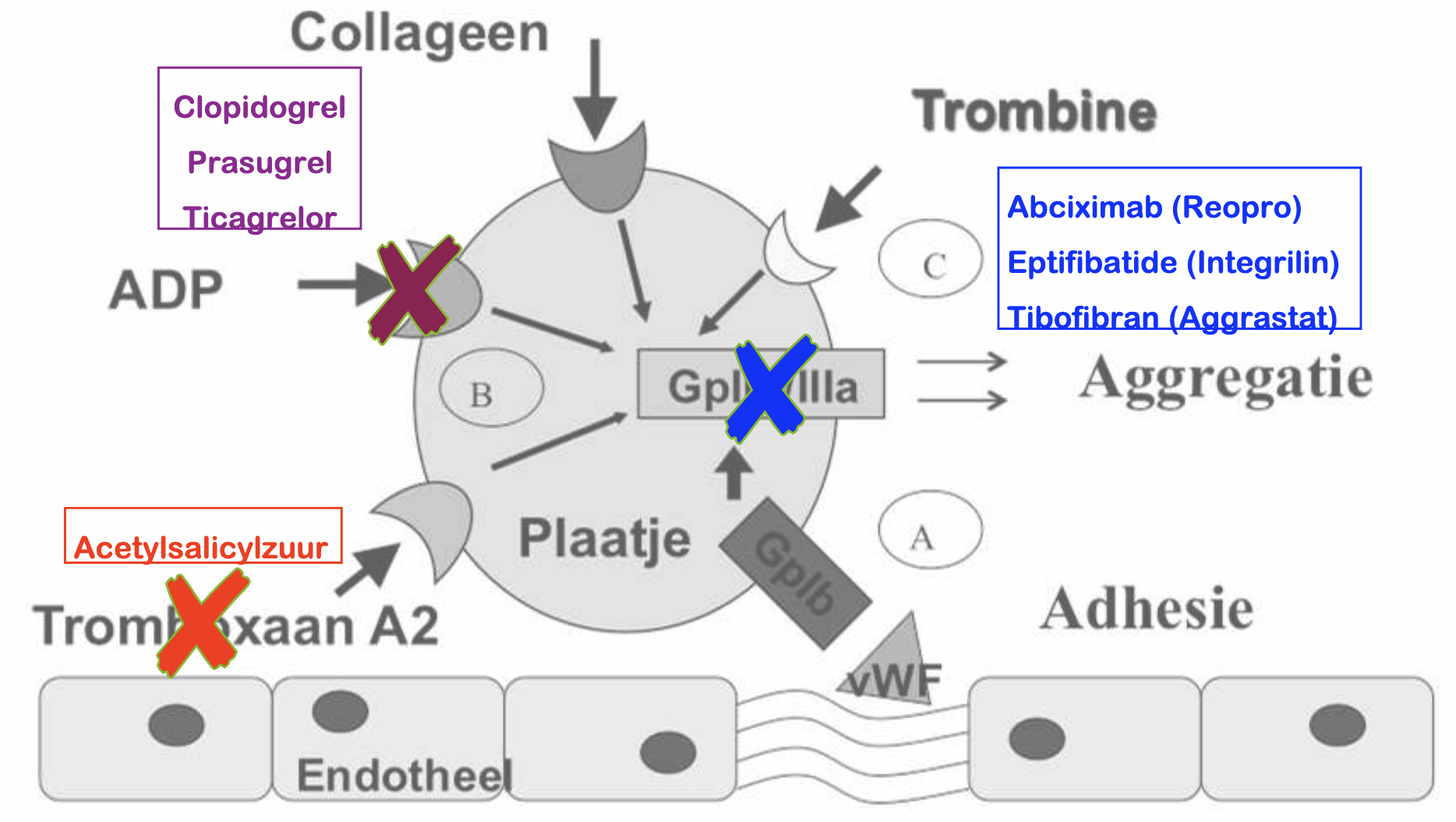 - Cardiologie: recidief coronairlijden onder clopidogrel over op (ticagrelor of prasugrel) + acetylsalicylzuur